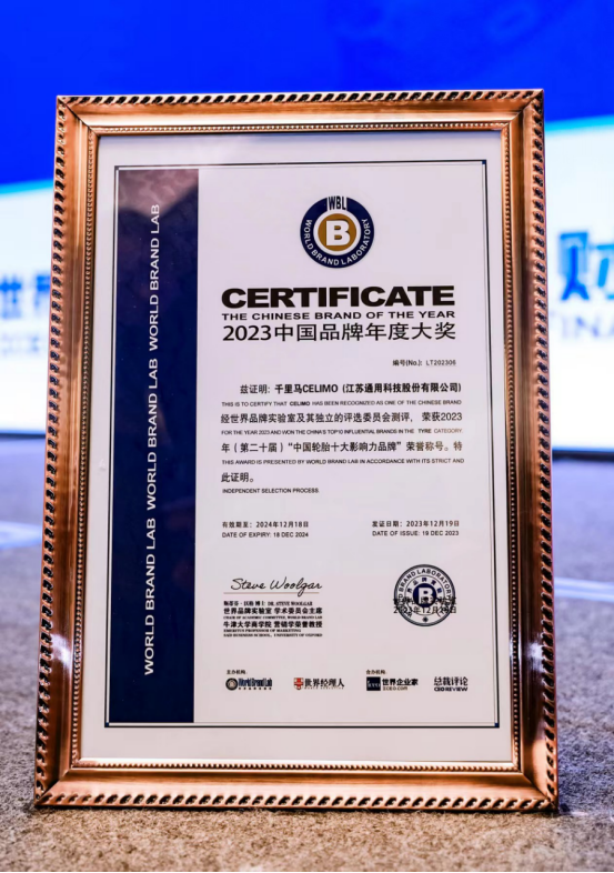 12月19日,2023年“中國(guó)品牌年度大獎(jiǎng)”評(píng)選在“世界經(jīng)理人峰會(huì)”上揭曉。通用股份憑借強(qiáng)大的品牌實(shí)力、卓越的創(chuàng)新能力以及優(yōu)異的產(chǎn)品品質(zhì),再度榮獲2023“中國(guó)輪胎十大影響力品牌”。