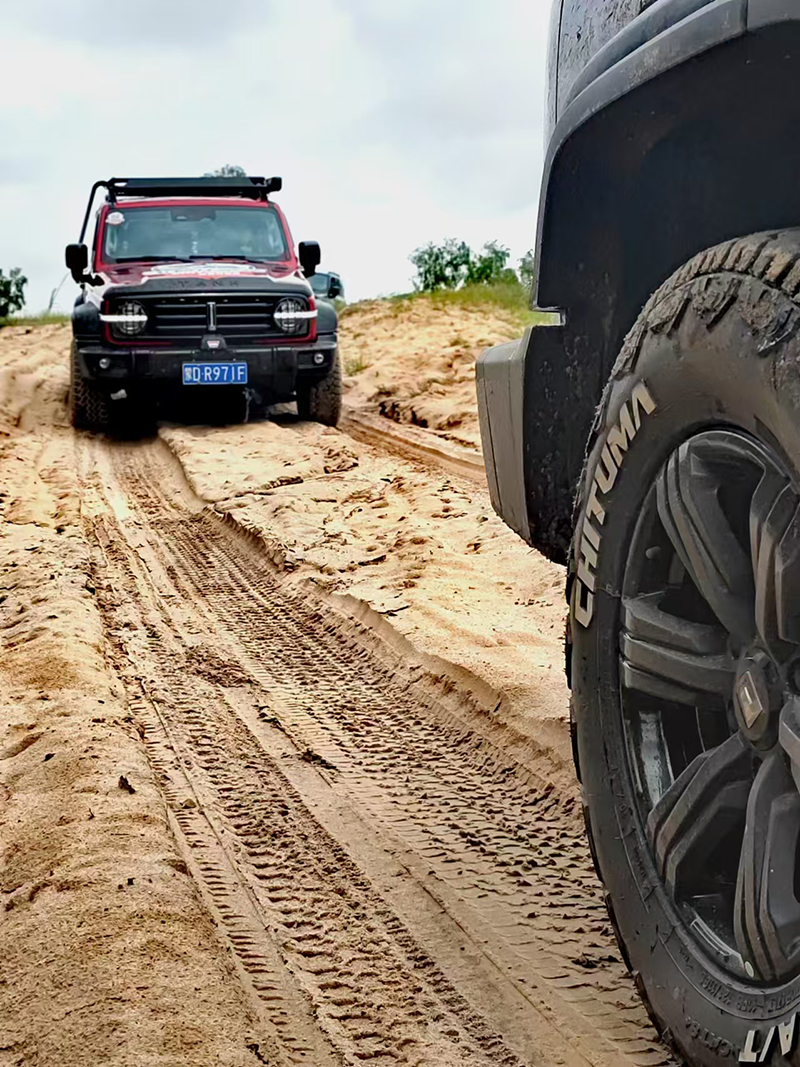 在玉龍沙湖,高達(dá)70-100米的沙丘成為了檢驗(yàn)輪胎性能的“試金石”。赤兔馬CAT8+輪胎采用高耐磨橡膠配方和胎肩立體防護(hù)設(shè)計(jì),帶來(lái)超強(qiáng)抓地力和自潔性能,即使面對(duì)陡坡沖沙也游刃有余,讓駕駛者盡享越野樂(lè)趣。